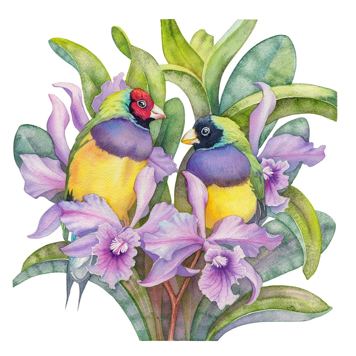 Key Learnings & Techniques: wet-on-wet, wet-on-dry, painting feathers, painting various types of tropical greenery. -